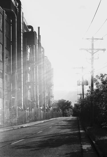 Early explorations of industrial form, light, and structure—made while studying photography. These images reflect the beginnings of a visual approach that continues to shape my work today.